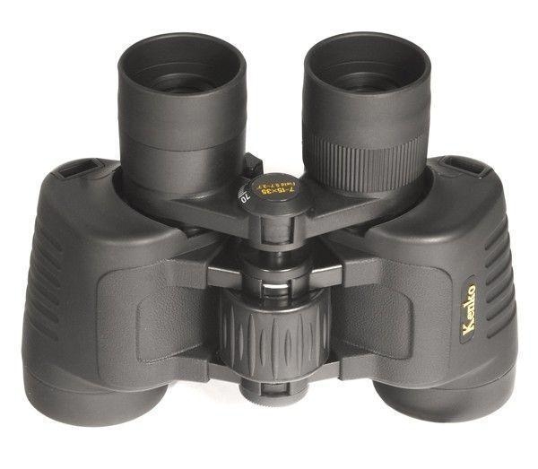 Панкратический бинокль KENKO ULTRA VIEW 7-15x35 представляет собой комбинацию биноклей с различной кратностью и даёт возможность наблюдателю оценить все преимущества такого использования. Изменение основных параметров бинокля (диаметр выходного зрачка, угловое поле зрения, светосила) с изменением увеличения позволяет применять KENKO ULTRA VIEW 7-15x35 при проведении наблюдений в черте города или на открытой местности, во время охоты или спортивных состязаний. Панкратический бинокль KENKO ULTRA VIEW 7-15х35 – это бинокль с переменным увеличением от 7 до 15 крат, что позволяет наблюдать за объектами, движущимися по сложной траектории на расстоянии от 10 м, не меняя местоположения наблюдателя. Для удобства работы с прибором и настройки его под базу глаз наблюдателя воспользуйтесь механизмом регулировки межзрачкового расстояния (в пределах 60-70 мм), барабаном центральной фокусировки (для настройки фокуса одновременно на оба глаза) и встроенной функцией диоптрийной коррекции (в интервале от -4 до +4 дптр). Переход от одного увеличения к другому осуществляется с помощью рычажкового механизма (рычажок устанавливается напротив соответствующего показателя увеличения 7, 9, 11, 13 или 15 крат - цифровой шкалы, расположенной на внутренней стороне правого окуляра). После каждого изменения кратности (увеличения) необходимо осуществлять повторную фокусировку изображения. Прочный корпус из сплавов алюминия защищает оптическую систему бинокля KENKO ULTRA VIEW 7-15x35 от механических повреждений. Резиновое покрытие предотвращает выскальзывание и помогает надёжно удерживать прибор даже во влажных руках. Использование классической оптической системы на базе Porro призм помогает получить объёмное изображение при минимальных потерях света. Рубиновое покрытие линз повышает контрастность изображений в сумерках. Все оптические стекла выполнены с использованием эко-технологий без примесей мышьяка и свинца.