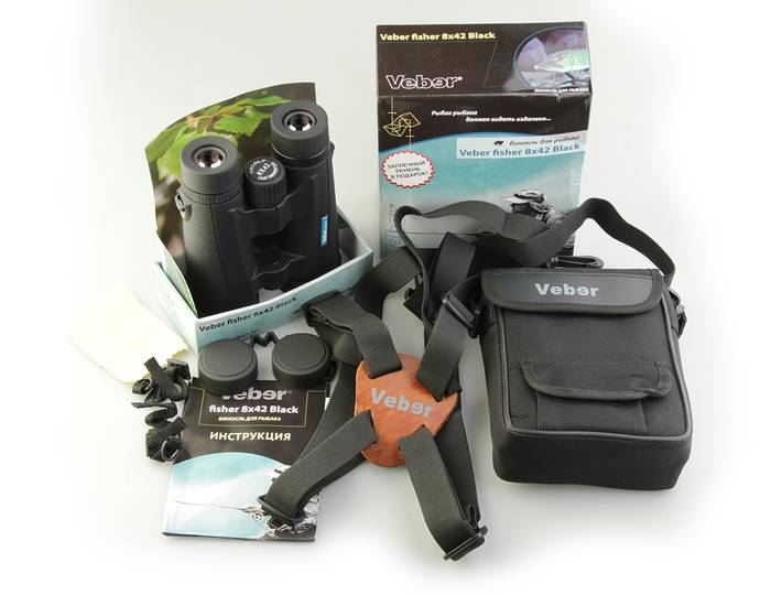 Бинокль Veber Fisher 8x42 black с заплечным ремнем