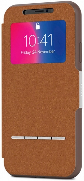 Чехол Moshi SenseCover для iPhone X Moshi SenseCover - это стильный и функциональный защитный чехол для iPhone X. Он представлен в форм-факторе книжки и изготовлен из высококачественной искусственной кожи, оснащен удобным окошком для просмотра текущей информации о входящий вызовах. Аксессуар обеспечивает высокий уровень защиты корпуса коммуникатора от различных механических повреждений и загрязнений. Чехол имеет функцию подставки для горизонтального просмотра фильмов. Стильный и удобный Moshi SenseCover позволит вам отвечать на звонки, не открывая чехол. Специальное окошко в верхней части экрана с дополнительной защитой даст возможность увидеть самую необходимую информацию. Конструктивно аксессуар представлен жестким бампером, прочность которого соответствует оборонному стандарту MIL-STD-810G. Он защитит торцы iPhone X от сколов и трещин. Вторым элементом чехла выступает крышка из эко-кожи, внутренняя поверхность которой выполнена из замши. Это позволит дисплею всегда оставаться чистым и не царапаться при частой эксплуатации смартфона.