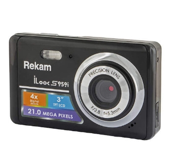 Цифровая камера Rekam iLook S959i (черная) Rekam iLook S959i - легкая и компактная цифровая фотокамера. Разрешение 21 мегапикселей обеспечивает высокую детализацию и четкость изображения. Функция стабилизации изображения позволяет делать моментальные снимки максимально устраняя дрожание камеры. Небольшой размер и легкий вес камеры позволяют каждый день держать ее под рукой - она не займет много места в небольшой сумке и легко поместится в кармане. На ярком 3-дюймовом экране удобно просматривать отснятые материалы и работать с меню камеры. Разнообразные режимы съёмки помогают получить отличные фотографии в любых условиях – на улице и в помещении, при ярком или недостаточном свете. Вы сможете выбрать специальные настройки для особых условий – вечеринка, пляж, ночная, спортивная и пейзажная съёмка. Функция «определения лица» позволяет камере автоматически фокусироваться на лицах, как основных объектах съёмки, благодаря чему вы сможете снимать отличные портреты и групповые снимки. В режиме «определение улыбки» камера автоматически производит съёмку, когда ваша модель начинает улыбаться. Кроме фотосъемки камера Rekam iLook S959i позволяет снимать видеоклипы с HD-разрешением. Поддержка карт памяти до 32 Гб дает возможность не заботится об экономии места.