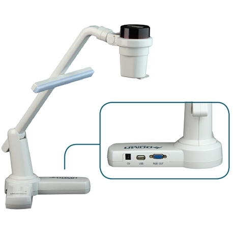 Документ-камера QOMO QPC30M QOMO QPC30M - портативная документ-камера нового поколения, объединившая в элегантном компактном корпусе передовые разработки производителя и возможности, присущие ранее только стационарным документ-камерам QOMO. В конструкции документ-камер QOMO QPC30M используется CMOS-матрица, обеспечивающая быструю обработку изображения в соответствии с условиями освещенности, а также высокую четкость и подробную передачу мельчайших деталей предмета. Документ камера поддерживает разрешение SXGA (1280х1024) и XGA (1024х768), а потому подходит для работы с широким рядом проекторов. Благодаря наличию у QPC30 встроенного коммутатора, проходного VGA-канала и USB-порта возможно подключение компьютера к проектору через нее. В результате реализации этой схемы пользователь получит мультимедийный комплекс с удобным управлением через документ-камеру. Важно подчеркнуть, что при подключении QPC 30 к компьютеру по USB-кабелю операционная система Windows самостоятельно распознает устройство. Так как документ-камера поддерживает стандарт Plug-and-Play, установка драйверов при этом не потребуется. Для мобильной документ-камеры это очень важно: независимо от того, к какому ПК ее подключит пользователь, он сможет использовать весь ее функционал, не затрачивая времени на установку программного обеспечения там, где это необязательно. QOMO QPC30 демонстрирует наилучшее сочетание качества и портативности: она выполнена в стильном корпусе белого цвета и имеет небольшой вес - чуть более 1,5 кг. Пользователь может легко установить документ-камеру наиболее удобным для себя способом: высота и угол наклона объектива, а также положение светодиодной подсветки регулируются вручную. В 2009 году QOMO QPC 30 вошла в Top 100 продуктов для сферы образования, выбранных читателями авторитетного американского журнала «District Administration», посвященного современным технологиям в образовании.
