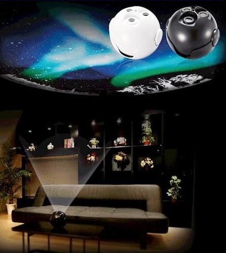 Помимо проецирования 10 тыс. небесных объектов, устройство способно проигрывать умиротворяющие звуки природы. При желании на изображение звездного неба можно наложить видовые проекции северного сияния и красивого вечернего заката. Изображения отличаются высокой яркостью и реалистичностью благодаря мощному светодиодному излучателю и качественной оптической системе. Можно выбрать планетарий "HomeStar Aurora" в корпусе черного или белого цвета.
