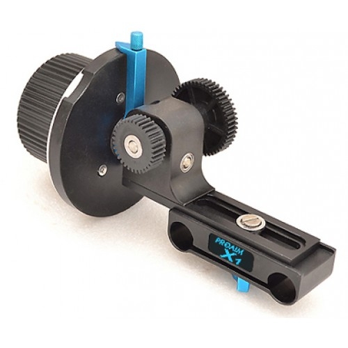 Обновленная конструкция модели Фоллоу фокуса Х1 совместима с объективами DV/HDV и DSLR камер. Устройство устанавливается на рельсовую опору 15 мм с расстоянием между рельсами 60 мм (от оси до оси). В комплекте поставляются шестерни: 65 мм – 75 мм, 75 мм – 85 мм и 85 мм – 95 мм. Гибкий, удобный дизайн и небольшой вес фоллоу фокуса позволяет оператору работать еще более эффективно и получать более четкие кадры.