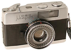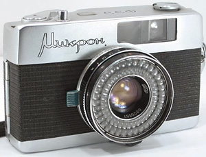 ОписаниеФотоаппарат ФЭД-Микрон – представляет собой советский шкальный полуформатный фотоаппарат, выпускавшийся Харьковским производственным машиностроительным объединением в 1968-1985гг. Эта модель имеет литой корпус из алюминиевого сплава, задняя стенка на некоторых вариантах откидывающаяся, на других – съемная. Модель оснащена курковым взводом затвора и перемотки плёнки, автоматическим самосбрасывающимся счётчиком кадров. Фотоаппарат ФЭД-Микрон является единственным советским полуформатным фотоаппаратом, использующим стандартные кассеты. Камера не имеет крепления для фотовспышки, автоспуск также отсутствует. Видоискатель оптический, параллаксный с ограничительной рамкой. Характеристики