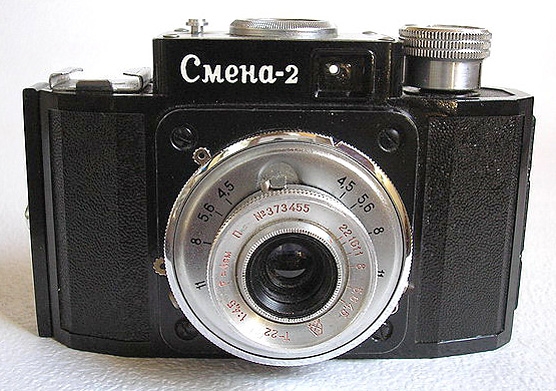 ОписаниеФотоаппарат Смена-2 – относится к семейству советских малоформатных шкальных фотоаппаратов, представляет собой модификацию послевоенной Смены. Фотоаппарат данной модели выпускался с 1955 по 1962 год ГОМЗ (Государственный оптико-механический завод , Ленинград) и с 1958 год по 1961 год Минским заводом ММЗ (ныне БелОМО). Модели выпускаемые этими заводами мало отличались друг от друга. Камера имеет бакелитовый корпус, задняя стенка съёмная. Камера использует две кассеты: принимающую и подающую, обратная перемотка отсутствует. Имеется блокировка от повторной съемки на один кадр, которая может быть отключена дополнительной кнопкой на верхнем щитке. Основной отличительной чертой данной модели является наличие автоспуска и синхроконтакта. Было выпущено 1 579 326 камер данной модели. Характеристики