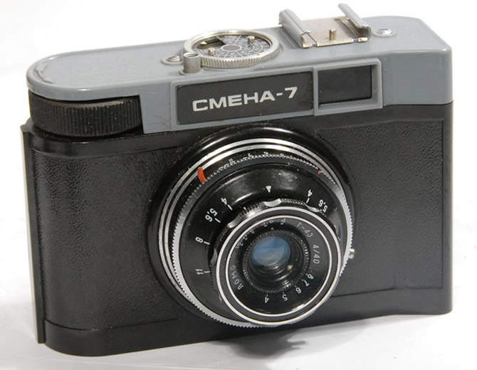 ОписаниеФотоаппарат Смена-7 относится к семейству советских шкальных фотоаппаратов, выпускавшихся ЛОМО (Ленинградское оптико-механическое объединение) с 1967 по 1971 год. Как и предыдущие модели, данный фотоаппарат имеет бакелитовый корпус со съемной задней стенкой и использует в работе с пленкой пустую принимающую кассету, обратная перемотка плёнки не предусмотрена, взвод затвора раздельный от перемотки плёнки. Автоспуск у данной модели отсутствует, но имеется синхроконтакт с любой выдержкой синхронизации. Был разработан вариант этой модели со встроенным экспонометром, но серийно не выпускался. Всего было выпущено 1 992 546 фотоаппаратов Смена-7. Характеристики