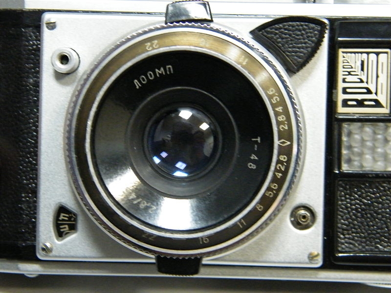 ОписаниеФотоаппарат Восход — советский шкальный фотоаппарат с ручной и полуавтоматической установкой экспозиции. Эта модель выпускалась с 1964 по 1968 год на Ленинградском оптико-механическом объединении имени В. И. Ленина (ЛОМО). Фотоаппарат Восход имеет литой корпус из алюминиевого сплава с открывающейся задней стенкой. Модель имеет курковый взвод затвора и перемотки плёнки, причём курок и перемотки фотоплёнки расположен на оправе объектива. Фотоаппарат Восход имеет также встроенный экспонометр, сопряжённый с селеновым фотоэлементом, полуавтоматическая установка экспозиции. Модель снабжена счетчиком кадров с обратным отсчетом, оптическим видоискателем, совмещённым со стрелочным индикатором экспонометра. Всего было выпущено 59 225 фотоаппаратов данной модели. Характеристики