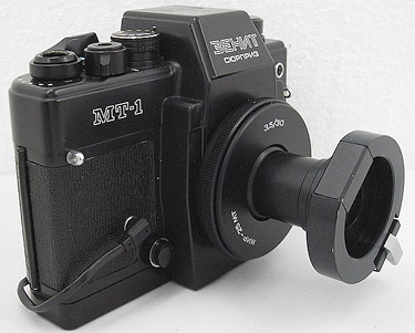 ОписаниеФотоаппарат Зенит МТ-1 или ЗЕНИТ-МТ1 Сюрприз относится к полуформатным фотоаппаратам, отличительной особенностью которых является возможность съемка с размером кадра 18×24 мм, соответствующим размеру кадра кинопленки. Это давало возможность получать 72 кадра, против обычных 36 на стандартной пленке. Вместе с небольшими габаритами и массой эти черты делали данную модель привлекательной для многих фотолюбителей. Такие камеры нашли применение в медицине, научной фотосъемке и криминалистике. Производство данной модели началось на Красногорском механическом заводе (КМЗ) в 1979 году. Экспономометрическое устройство в фотоаппарате отсутствует, выдержки: 1, 1/2, 1/4, 1/8, 1/16, 1/30, 1/60, 1/125, 1/250, 1/500 с, (на части камер: 1/1000 с), от руки и длительная. Также модель имеет впечатывающее устройство, проставляющее в автоматическом режиме номера кадров. Характеристики