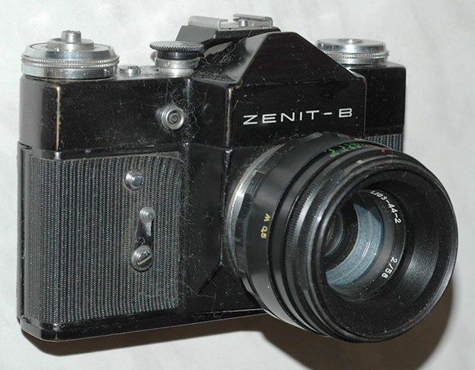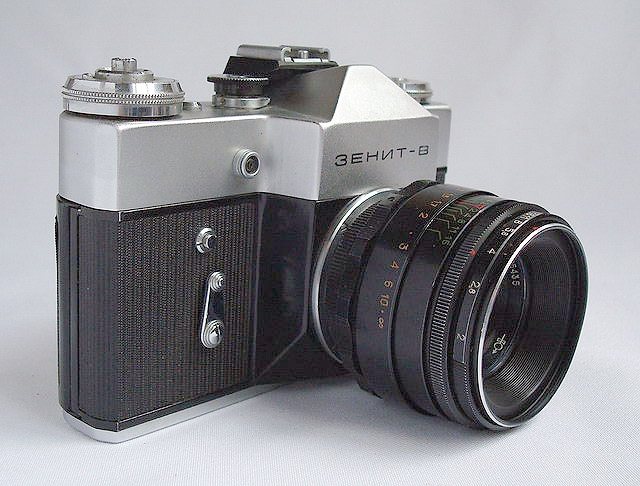 Фотоаппарат Зенит-В выпускался на Красногорском механическом заводе (КМЗ) в 1968 – 1973 годах. Эта модель фотоаппарата была создана на основе модели «Зенит-Е» и отличалась от базовой модели отсутствием экспонометра. Фотоаппарат Зенит-В, таким образом, стал более доступной по цене массовому потребителю и был выпущен в количестве 889758 штук. Фотоаппарат Зенит-В относится к семейству однообъективных зеркальных фотоаппаратов с ручной установкой экспозиции. Имеет алюминиевый корпус с открывающейся задней стенкой и счётчик кадров с ручной установкой первого кадра. Эта модель также оснащена курковым взводом затвора и перемотки плёнки.