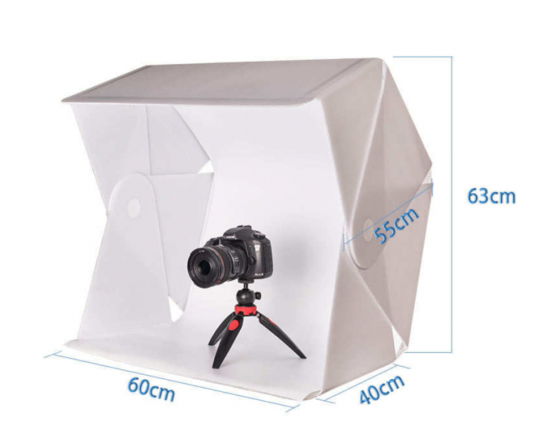 Фотобокс для предметной съемки складной с LED-подсветкой, 60 см + 2 фона бесплатно