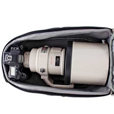 Вмещает полноразмерную профессиональную цифровую камеру и объектив 400 2.8 с обратной блендой. Разработанный для использования в условиях многолюдной городской среды, этот тонкий, легкий фоторюкзак вписывается по размерам в международные требования к ручной клади. Вмещает полноформатную профессиональную цифровую камеру с присоединенным объективом 400 2.8.