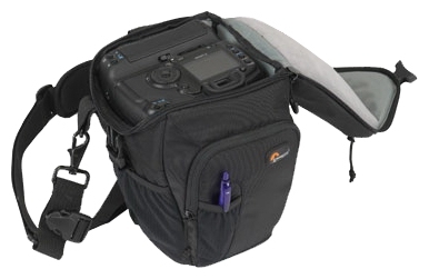 Сумки треугольной формы Lowepro Toploader AW отлично подходят для активных фотографов. Особенностью дизайна является возможность удобно располагать камеру с надетым объективом, а конструкция верхней крышки позволяет доставать камеру в считанные секунды. Облегченный вес и компактность сумки позволят владельцам камер целиком сосредоточиться на процессе фотосъемки и запечатлеть неповторимые мгновения, не отвлекаясь на переживания по поводу сохранности оборудования. Сумку можно переносить как с помощью наплечного и специального поясного ремня S&F Deluxe Weistbelt, так и при помощи системы нагрудных ремней Topload Chest Harness, что позволяет подобрать оптимальный способ переноски оборудования для любой ситуации. Мягкая трикотажная внутренняя подкладка защищает ЖК-дисплей и оптику камеры от царапин. Внешний водоотталкивающий и непротирающийся материал обеспечит долгий срок службы сумки и надежную защиту камеры. Характеристики: