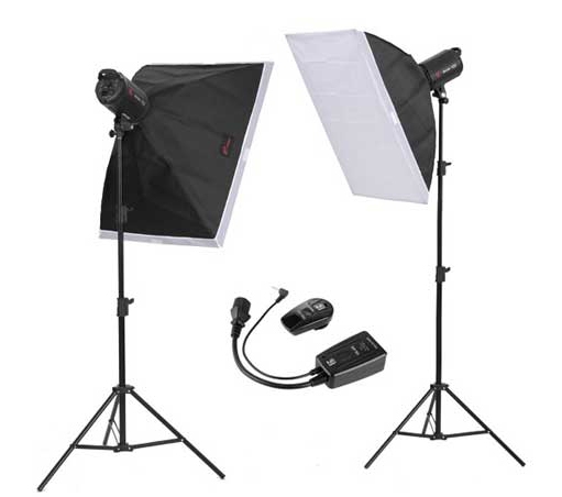 - Два компактных моноблока SPARK-300 Studio Flash общей мощностью 600 Дж, байонетное крепление Bowens