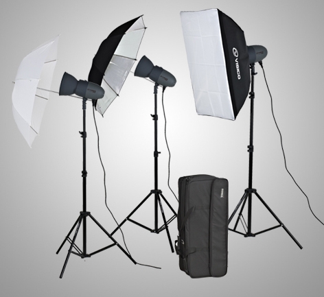 Универсальный комплект импульсного света Visico VL PLUS 150 Valued kit с сумкой – надежный универсальный комплект импульсного освещения для фотосъемки на базе 3-х моноблоков Visico VL PLUS 150 Studio flash общей мощностью 450 Дж, байонетное крепление Bowens.