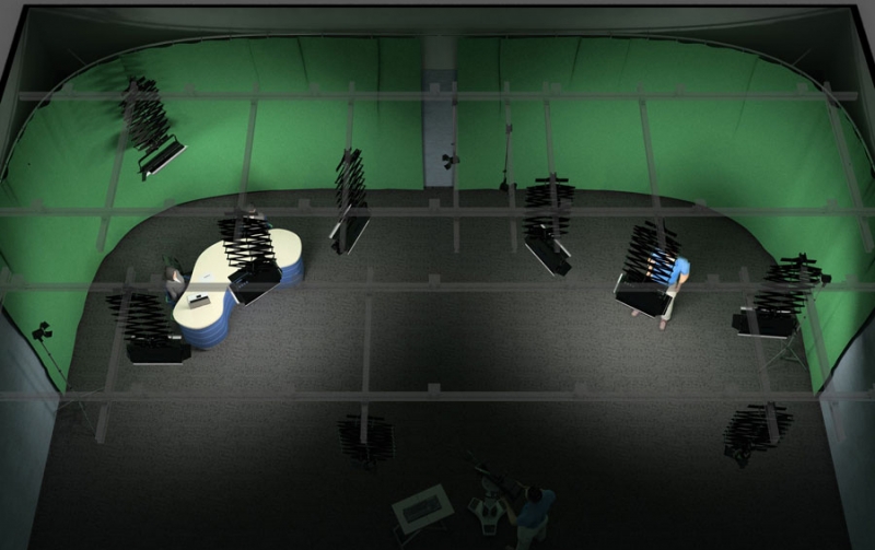 Многофункциональный комплект студийного света с возможностью управления яркостью предназначен для студий с рабочей площадью до 80 м² и потолками более 3 м. Сбалансированный состав рисующего и заливающего света обеспечивает возможность качественной съемки как крупных, так и общих планов. Гибкая, настраиваемая система подвеса позволяет оптимально разместить по высоте осветительные приборы. Профессиональная центральная система управления яркостью света на базе 24-канального пульта Logocam обеспечивает точную настройку освещенности объектов. Позволяя обеспечить достаточным количеством света несколько съемочных площадок, дает возможность снимать несколько программ одновременно, и рассчитан на оптимальное освещение до 4-5 объектов съемки. В качестве заливающего света в комплекте предлагается использовать люминесцентные светильники с регулировкой яркости Logocam U-Light Alpha 220 DIM, а для подсветки фона или в качестве дополнительного источника заливающего света можно использовать люминесцентные светильники с регулировкой яркости Logocam U-Light Alpha 110 DIM. Галогенные прожекторы с линзой Френеля и регулируемой яркостью Logocam Fresnel 300 DIM, Logocam Fresnel 650 DIM и Logocam Fresnel 1000 DIM рекомендуются использовать как рисующие и моделирующие источники света. Светильники галогенные рассеянно-направленного света Logocam OF-1000 могут использоваться, как источник для подсветки фона или источник контрового света. Суммарный галогенный эквивалент всех светильников – 12000 Ватт.