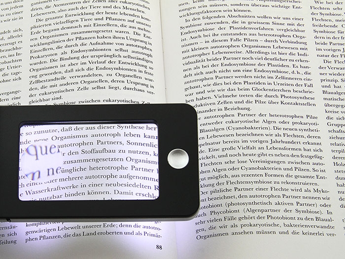 Батарейки и чехол в комплекте. Технические характеристики Увеличение, крат: 2.5 Увеличение "пятачка", крат: 4 Размер линзы, мм: 75x43 Диаметр "пятачка", мм: 23 Материал линзы: пластик Материал лупы: пластик Питание: 4 батарейки LR1130 Габаритные размеры, мм: 119x65x11 Вес, г: 63 |