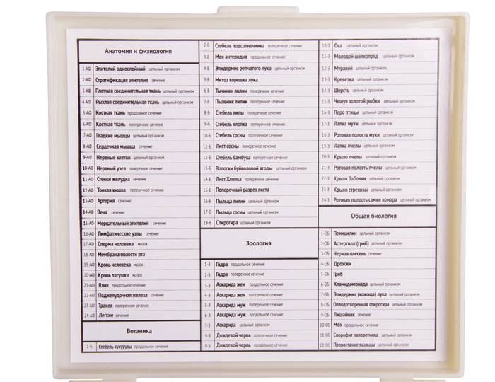 Состав набора микропрепаратов Микромед №90: