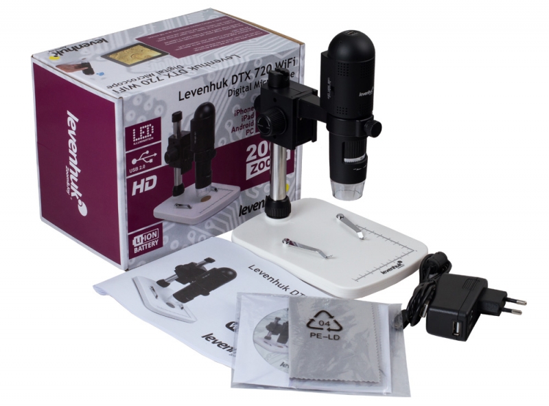 - Микроскоп Levenhuk DTX 720 WiFi несовместим с внешними цифровыми камерами.