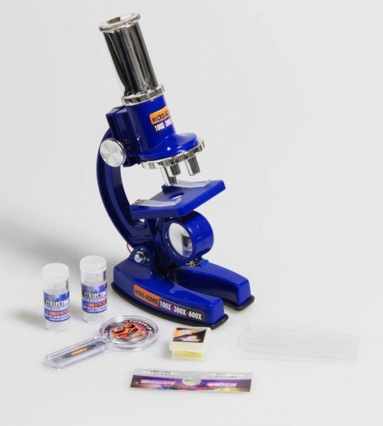 Комплектация Микроскоп 100х, 300х, 600х - 1 Покровное стекло - 12 Чистый стикер - 12 Предметное стекло - 4 Предметное стекло с препаратом - 1 Колба для препаратов - 2 Лупа - 1 |