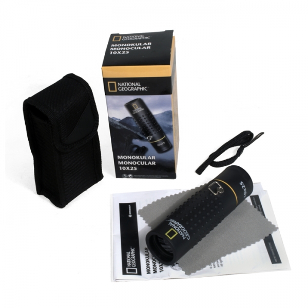 Монокуляр Bresser National Geographic 10x25 – это удобная и компактная зрительная труба с 25-миллиметровым объективом и мощным 10-кратным увеличением. Монокуляр гораздо компактнее и легче бинокля, поэтому его удобно брать с собой в путешествие. Монокуляр имеет колесико фокусировки для наведения резкости, а также мягкий резиновый наглазник. Если вы носите очки, наглазник можно сложить и тем самым увеличить поле зрения. Модель комплектуется шейным ремешком и мягким защитным чехлом. Характеристики: Материал оптики: ВК-7 Покрытие линз: просветляющее Увеличение, крат: 10 Диаметр объектива (апертура), мм; 25 Реальный угол зрения, °: 5,4 Диаметр выходного зрачка, мм: 2,4 Корпус: пластик Дополнительно: тип призмы – roof сумеречный фактор – 15,81 относительная яркость – 6,25 Поле зрения на удалении 1000 м, м: 98 |