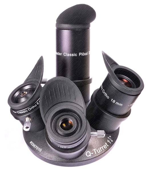 Набор окуляров с револьверным узлом Q-Turret предлагает максимальную легкость в использовании и полную гамму увеличений, необходимых для вашего телескопа.
