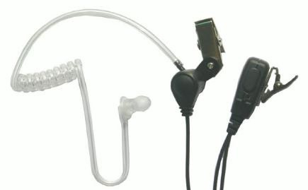 Скрытый наушник с гибкой акустической трубкой. Предназначен только для получения голосовых сигналов от других абонентов. Кабель с разъёмом mini-jack 3,5 и 2,5 мм соединяет наушник с поясным абонентским блоком Compak. |