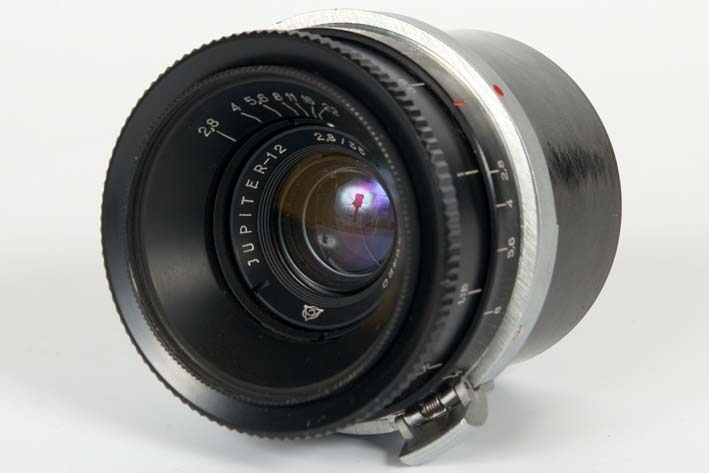 ОписаниеОбъектив Юпитер-12 для M39 – представляет собой широкоугольный несимметричный объектив с просветлённой оптикой и ирисовой диафрагмой, предназначенный для дальномерных фотоаппаратов типа «Зоркий». Выпускался на заводах на КМЗ (Красногорск), ЛЗОС (Лыткарино) с 1947 года. При использовании данного объектива отмечается большая резкость на контурах и размытие мелких деталей; бокэ на бликах имеет вид бублика с провалом яркости по центру. Характеристики