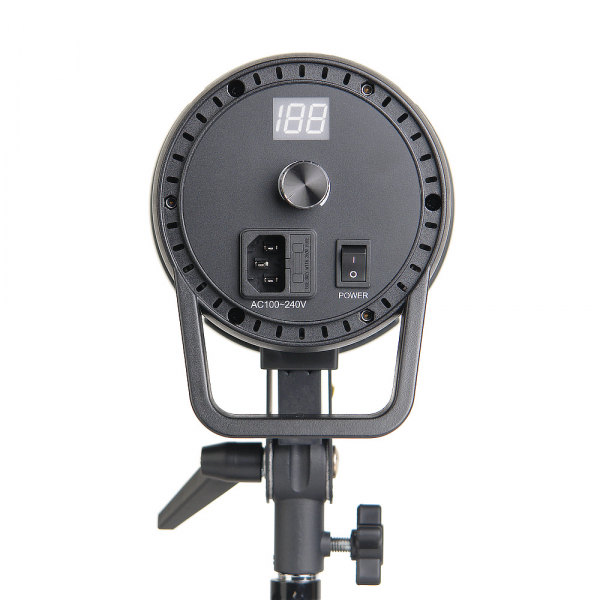 Осветитель светодиодный Falcon Eyes Studio LED 100BW Falcon Eyes Studio LED 100BW – светодиодный осветитель мощностью 100 Вт с цветовой температурой 5600 (± 200) К используется как источник основного, заполняющего или контрового света в процессе студийной съемки. Осветитель оснащен мощным светодиодом с индексом цветопередачи >95. Светодиодный чип последнего поколения рассчитан на работу в течение десятков тысяч часов. Охлаждающий радиатор помогает обеспечить соответствующий срок службы прибора. Во время хранения и перевозки светодиод закрывается защитным колпаком. Прибор обеспечивает освещенность 5400 лк на расстоянии 1 м, дает возможность сформировать необходимый для фотосессии светотеневой рисунок. Без насадок осветитель может служить для создания контрового света, а набор имеющихся у него адаптеров – байонет Bowens, кольцо для софтбокса и крепление для фотозонтов – позволяет использовать широкую гамму светоформирующих насадок. Надежный металлический корпус с кронштейном и рукояткой защищает осветитель от повреждения и позволяет регулировать его наклон. Для управления прибором используются простой кнопочный выключатель и валкодер для плавного, с шагом 1%, регулирования мощности от 0 до 100%. Значение мощности отображается на ЖК-дисплее (24х12 мм). Питание осветителя осуществляется напрямую от сети без сетевого адаптера. В комплект включен запасной предохранитель. Для установки осветителя используется стойка или другая опорная конструкция со шпиготом 5/8”, на котором прибор фиксируется винтовым зажимом. Малошумный (около 35 дБ) встроенный вентилятор эффективно охлаждает корпус и не мешает записывать звук в процессе видеосъемки.