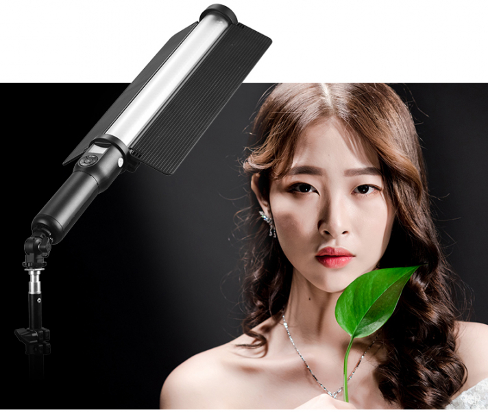 - Осветитель можно установить на стойку для освещения или держать в руке.