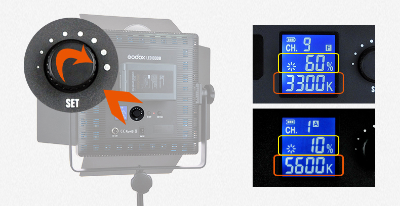 - Три модели для выбора нужных световых эффектов - Белый свет (5600K), желтый свет (3300K) и Bi-color (3300K-5600K)