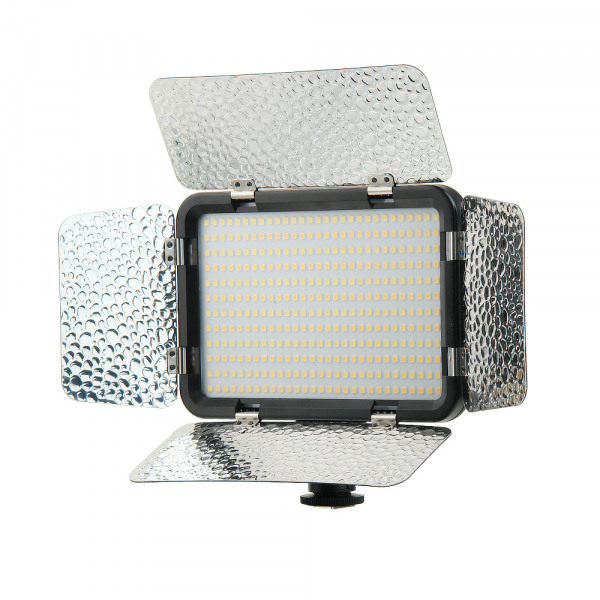 Осветитель светодиодный накамерный Falcon Eyes LedPRO 348BD Bi-color LedPRO 348BD bi-color – компактный накамерный осветитель с излучающей поверхностью 150х100 мм и регулируемой цветовой температурой 3200–5600 К. Яркость свечения желтых и белых светодиодов регулируется раздельно. Плавно изменяя валкодерами мощность двух групп светодиодов можно выбрать сочетание с необходимой цветовой температурой. Съемный полупрозрачный фильтр, закрывающий излучающую поверхность, рассеивает и выравнивает световой поток, смягчает границы теней. Прочные металлические шторки с серебристой фактурной поверхностью отражают свет и позволяют направлять его в нужном направлении. Осветитель может работать от аккумулятора типа NP-F или от сетевого адаптера с выходным напряжением 7,2–8,4 В (аккумулятор и адаптер приобретаются отдельно). Уровень заряда батареи можно контролировать с помощью индикатора и кнопки Test на задней панели прибора. Время работы от аккумулятора NP-F970 – около 1,5 часов. Осветитель устанавливается в горячий башмак камеры с помощью адаптера с винтом 1/4”. Конструкция позволяет отрегулировать угол наклона осветителя и зафиксировать его винтовым зажимом. Гнездо с металлической втулкой на винт 1/4” в основании прибора позволяет устанавливать его не только на фотокамеры, но и на любые опорные конструкции (стойки, штанги, держатели) и использовать как дополнительный источник света, когда невозможно разместить осветитель обычных габаритов.