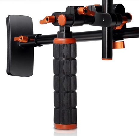 Используется как с видео-, так и с DSLR камерами. Ручки и плечевая поддержка из мягкой резины обеспечивают дополнительный комфорт при работе. Установка полностью совместима с дополнительными аксессуарами, такими как фоллоу-фокус, компендиум и др.