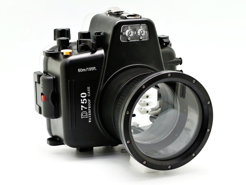 Подводный бокс (аквабокс) Meikon для фотоаппарата Nikon D750 (105 мм / 2.8 micro) Подводный бокс (Аквабокс) для фотоаппарата Nikon D750. Байонет Type1 Приятно удивит подводных фотографов простотой использования и надежностью. Глубина погружения данного бокса до 60 метров, используемые материалы при изготовлении - прочный поликарбонат, закаленное стекло, нержавеющая сталь. Два оптоволоконных порта позволяют подключить к боксу внешние подводные вспышки для получения ярких и красивых фотографий подводного мира. Опционально возможны установка электронного порта для вспышек. Наличие датчика протекания со световым и звуковым сигналом. Подводный бокс имеет сертификат IPX8 & CES. В комплекте поставляется со сменным портом к объективу Nikon 105mm f/2.8G IF-ED AF-S VR Micro-Nikkor.