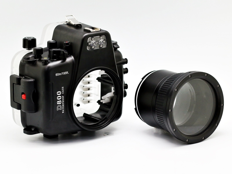 Подводный бокс (аквабокс) Meikon для фотоаппарата Nikon D800 / D810 Подводный бокс (Аквабокс) для фотоаппарата Nikon D800. Байонет Type1 Приятно удивит подводных фотографов простотой использования и надежностью. Глубина погружения данного бокса до 40 метров, используемые материалы при изготовлении - прочный поликарбонат, закаленное стекло, нержавеющая сталь. Два оптоволоконных порта позволяют подключить к боксу внешние подводные вспышки для получения ярких и красивых фотографий подводного мира. Подводный бокс имеет сертификат IPX8 & CES. В комплекте поставляется со сменным портом к объективу Nikon 105mm f/2.8G IF-ED AF-S VR Micro-Nikkor.