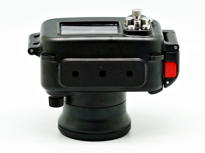 Подводный бокс (аквабокс) Meikon для фотоаппарата Sony CyberShot RX100 IV (алюминий) Подводный бокс выполнен из цельного блока твердого алюминиевого сплава. Фрезеруется на высокоточных станках и анодируется с учетом использование в морской воде. Этот ультра-прочный корпус имеет глубину погружения 100 метров в соленной воде. Бокс имеет датчик протекания со звуковым и световым сигналом, два оптических порта для подводной вспышки, а также иллюминатор имеет резьбу 67 мм для дополнительных насадок и фильтров. Продуманная эргономика позволит Вам с удобством использовать все функции цифрового фотоаппарата.