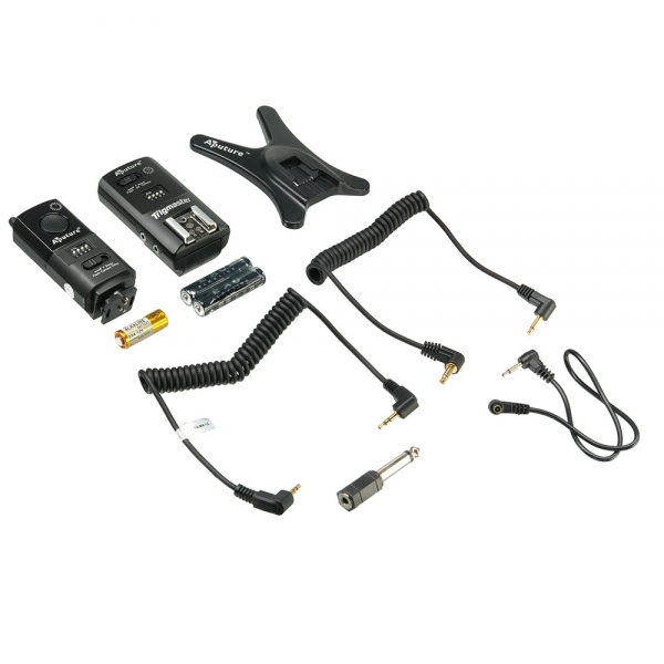 Передатчик устанавливается в «горячий башмак» камеры, фиксируется винтом и передает сигнал на приемник. Кнопка «Тест» на передатчике позволит провести проверку настройки синхронизатора и смоделировать работу осветителей. Синхроразъем позволит подключить передатчик к камере, не оборудованной «горячим башмаком» (кабель в комплекте). Конструкцией предусмотрена функция спящего режима, что сокращает потребление энергии, когда передатчик не используется. Время работы передатчика от одной батареи — год в режиме ожидания или 20000 непрерывных срабатываний. Питается от батареи типа 23А (12 В). Приемник подключается к накамерной вспышке с помощью разъема «горячий башмак» или к студийной вспышке синхрокабелем из комплекта, работает двух батареек типа ААА и «запускает» вспышку при получении сигнала от передатчика. Резьба 1/4" позволит закрепить приемник с вспышкой на опоре (стойка, штатив При использовании устройств Canon или Nikon для управления вашей фотовспышкой скорость синхронизации достигает 1/250 секунды, а расстояние дистанционного управления — 100 метров (на открытой местности). В комплекте: две батарейка типа ААА, одна батарейка типа 23А, синхрокабель 2,5 мм — PC, синхрокабель 2,5 мм — 3,5 мм, синхрокабель 2,5 мм — синхроконтакт камеры (см. таблицу совместимости), переходник 3,5 мм — 6,3 мм.