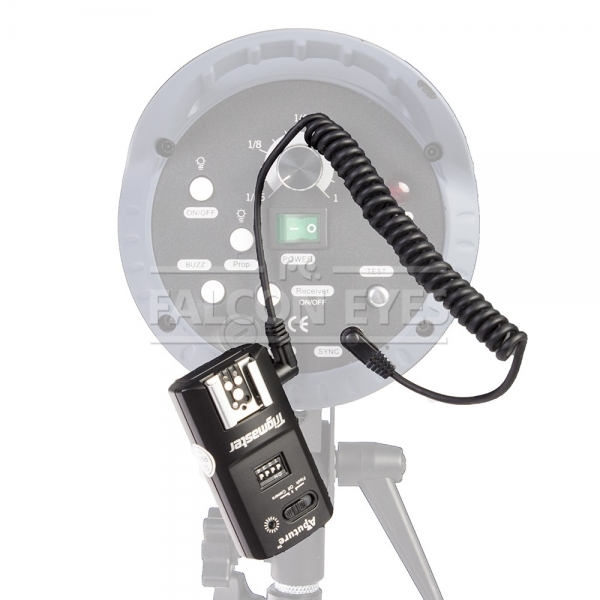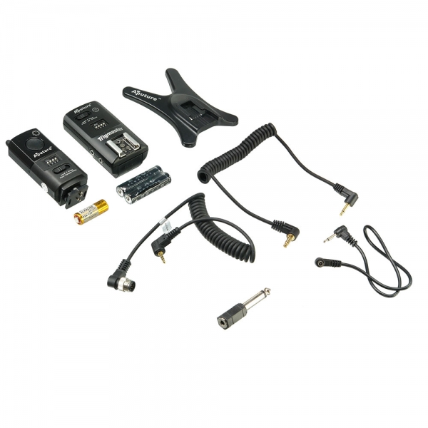 Передатчик устанавливается в «горячий башмак» камеры, фиксируется винтом и передает сигнал на приемник. Кнопка «Тест» на передатчике позволит провести проверку настройки синхронизатора и смоделировать работу осветителей. Синхроразъем позволит подключить передатчик к камере, не оборудованной «горячим башмаком» (кабель в комплекте). Конструкцией предусмотрена функция спящего режима, что сокращает потребление энергии, когда передатчик не используется. Время работы передатчика от одной батареи — год в режиме ожидания или 20000 непрерывных срабатываний. Питается от батареи типа 23А (12 В). Приемник подключается к накамерной вспышке с помощью разъема «горячий башмак» или к студийной вспышке синхрокабелем из комплекта, работает двух батареек типа ААА и «запускает» вспышку при получении сигнала от передатчика. Резьба 1/4" позволит закрепить приемник с вспышкой на опоре (стойка, штатив При использовании устройств Canon или Nikon для управления вашей фотовспышкой скорость синхронизации достигает 1/250 секунды, а расстояние дистанционного управления — 100 метров (на открытой местности). В комплекте: две батарейка типа ААА, одна батарейка типа 23А, синхрокабель 2,5 мм — PC, синхрокабель 2,5 мм — 3,5 мм, синхрокабель 2,5 мм — синхроконтакт камеры (см. таблицу совместимости), переходник 3,5 мм — 6,3 мм.