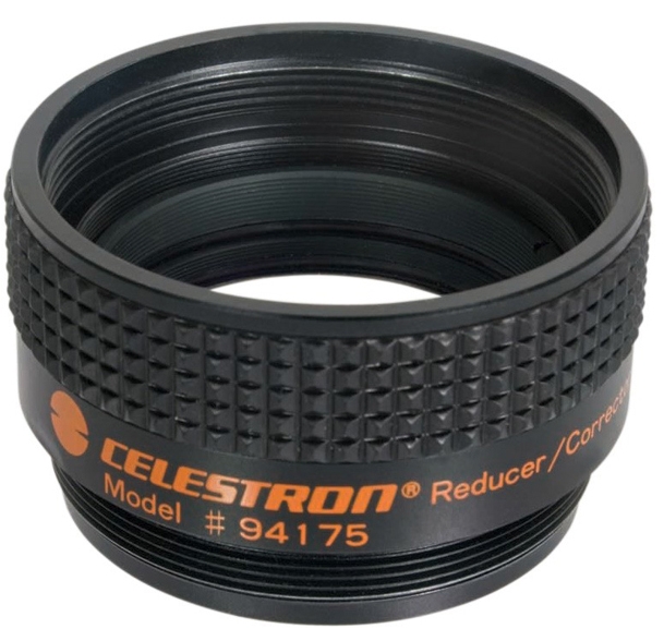 Редуктор фокуса (система линз в металлической оправе) уменьшает фокусное расстояние телескопа в 1,6 раза, а также исправляет кривизну поля в телескопах и уменьшает краевые аберрации. Применение редуктора фокуса при визуальных наблюдениях позволяет получить большее поле зрения, а при фотографических – значительно сократить время экспозиции. Редуктор фокуса состоит из четырех оптических элементов, все поверхности которых покрыты многослойным просветлением. Совместим со всеми телескопами системы Шмидта-Кассегрена 5", 6", 8", 9 1/4", 11" и 14". Не совместим с телескопами Celestron EdgeHD. |