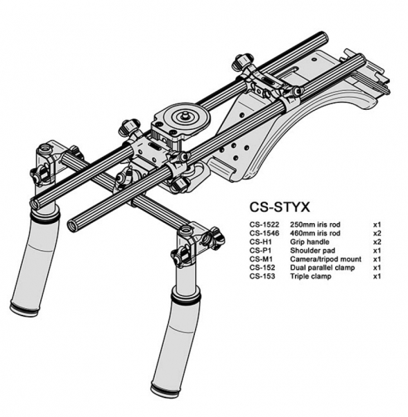 Профессиональный комплект поддерживающих штоков для DV-камер CS-STYX позволяет обеспечить стабилизацию изображения при съемке с рук. Этот комплект может быть изменен и обеспечивать различные конфигурации. Угол наклона и расстояние между ручками легко изменяется. Благодаря модульной конструкции комплектов поддерживающих штоков Cambo, у пользователя есть возможность подстроить оборудование под свои нужды. Этот комплект поддерживающих штоков для DV-камер может быть использован с различными типами камкордеров. Комплект поставки CS- PA1 включает в себя: