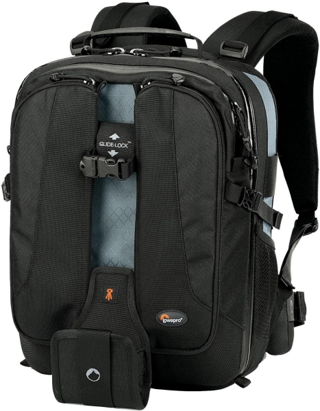 Вместимость Lowepro Vertex 200 AW: 1-2 профессиональные камеры или среднеформатная система; 4-6 объективов до 300 мм F/2.8, штатив, вспышка и электронные аксессуары. Размер отделения под ноутбук: 30х5х42 см. Система регулируемых плечевых ремней эргономичная, подгоняется под индивидуальные потребности и благодаря этому значительно снижает нагрузку на позвоночник даже при полной загрузке рюкзака. Два внешних передних кармана позволяют хранить все аксессуары в одном месте. Специальный крепежный механизм позволяет закрепить штатив: трипод, монопод или ледоруб.