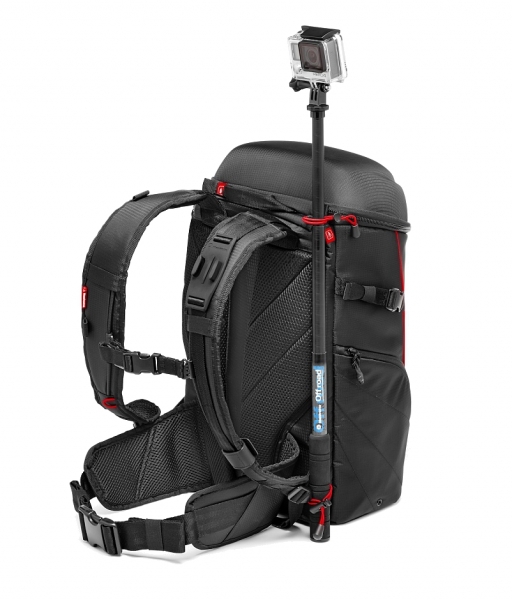 Новинка от компании Manfrotto – рюкзак для экстремальных путешествий. Легкий, компактный и эргономичный. Специальное крепление камеры GoPro для съемки на ходу. Внутренние съемные чехлы для защиты оборудования вмещают до 3 камер GoPro и одной компактной фотокамеры типа Sony A7 с объективом 24-70/4. В рюкзаке можно расположить различные аксессуары и личные вещи. Отделение для ноутбука до 12,9 ". Верхняя крышка рюкзака усилена дополнительной защитой. На вешней стороне рюкзака предусмотрен карман для штатива Pixi. Широкий поясной ремень и дополнительный ремень на груди обеспечивают надежную фиксацию рюкзака при экстремальных приключениях. Дождевой чехол в комплекте. Рюкзак изготовлен их высококачественных материалов. Цвет черный. Характеристики