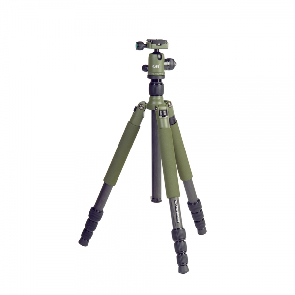 Штатив Falcon Eyes Green Line 1550C BH-10 Карбоновый и самый легкий в серии Falcon Eyes Green Line 1550C BH-10 – карбоновый штатив для использования с камерами весом дщ 10 кг, вес штатива с головой составляет всего 1,47 кг, максимальная рабочая высота 1550 мм. Компактный, легкий и устойчивый к вибрациям карбоновый штатив подойдет для тех, кто любит частые вылазки на природу и пешие прогулки, но привык путешествовать налегке. Благодаря механизму обратного складывания ног, штатив имеет компактные размеры и сможет поместиться даже в походную сумку, длина в сложенном виде составляет 430 мм. Шаровая голова для больших нагрузок и быстрой фиксации камеры Шаровая голова обладает высокой прочностью и прецизионным исполнением. Все движения площадки с камерой происходят плавно и без «рывков». Особенностью данной штативной головы является механизм фрикционного контроля, который позволит настроить предустановленную силу трения шара в свободном состоянии. Рукоятка фиксации шара оборудована вращающимся диском с цифровой шкалой, это позволяет запомнить установленное регулятором усилие. Фиксатор на оси панорамирования работает независимо от фиксатора шара и позволяет регулировать вращение, не теряя выбранного наклона камеры. Быстросъемная площадка оборудована механизмом безопасности, который предотвращает падение камеры при случайном ослаблении фиксатора. Прорезь под 90° обеспечивает возможность перевода камеры между горизонтальным и вертикальным форматами. Выравнивающий пузырьковый уровень поможет выставить камеру по горизонту. Съемная реверсивная центральная колонна Центральная колонна съемная, это позволяет использовать штатив с головой без колонны для увеличения устойчивости и снижения общего веса или, перевернув колонну головой вниз, для съемки с нижней точки. Регулировка центральной колонны по высоте добавляет гибкости при съемке. Снизу колонны находится крюк для груза-противовеса, положение колонны прочно фиксируется цанговым зажимом. 2 в 1: штатив легко преобразуется в монопод Одним из преимуществ серии Green Line является возможность преобразования штатива в монопод - одна из ног штатива съемная. Монопод можно использовать как с шаровой головкой, так и без нее. Для увеличения высоты монопода нога соединяется с центральной колонной. Готов к установке на любой поверхности Селекторы угла расстановки ног позволяют зафиксировать каждую ногу на любом из трех заданных углов независимо друг от друга, это обеспечивает большую гибкость для позиционирования камеры. Фиксация ног штатива под разным углом дает возможность использовать в качестве опоры ступени, камни и другие сложные поверхности, а также проводить съемку с нижней точки. Цанговые зажимы надежно соединяют между собой 4 секции ног. В зависимости от поверхности, на которую устанавливается штатив, ввинчиваемые в ножку резиновые опоры могут быть заменены на металлические шипы, входящие в комплект поставки. Любая погода нипочем Изготовлен из материалов, которые позволяют использовать штатив при неблагоприятных погодных условиях. Мягкие накладки, расположенные на каждой ноге, позволят комфортно работать даже в холодное время года. Штатив поставляется в комплекте с сумкой и широким наплечным ремнем, сумка изготовлена из водоотталкивающего материала, плотная подкладка сумки защищает штатив от 