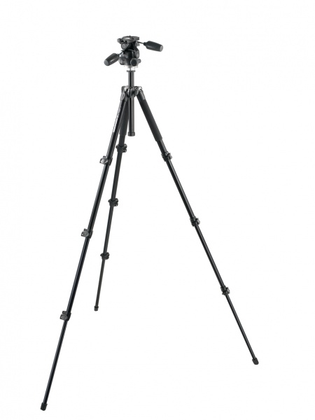 Комплект штатив алюминиевый четырехсекционный и 3-D голова. Все секции штатива выполнены в виде трехгранника для максимального улучшения фиксации каждой ножки. Антишоковый воротник обеспечит хорошую амортизацию, если центральная колонна резко опустится на крестовину штатива. 3-D голова с пузырьковым уровнем для более точных настроек. Съемная площадка. Вес 2,65 кг, допустимая нагрузка 4 кг, размер 44-163 см, в сложенном виде 59 см.