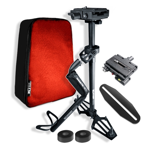 Система стабилизации камеры (стедикам) с упором под локоть MY Steady ULTRA - универсальная модель и работает с любыми видеокамерами весом от 300 гр до 4 кг. При использовании дополнительного набора грузов можно сбалансировать камеру весом до 5 кг. MY Steady ULTRA новейшая разработка нашей компании. Модель рассчитана как для профессионалов, так и для любителей. MY Steady ULTRA обеспечивает плавное движение камеры, создает эффект "летящей камеры". Картинка получается без резких скачков и тряски. Главным отличием MY Steady ULTRA от предыдущей модели является наличие дополнительной площадки. С помощью этой площадки можно установить на стедикам как тяжелые профессиональные камеры, так и легкие небольшого размера видеокамеры. Улучшены эргономические свойства. Увеличено количество грузов. Так же как и предыдущая модель стедикам имеет упор под локоть. Это делает MY Steady ULTRA универсальной системой в отличие от других систем стабилизации.