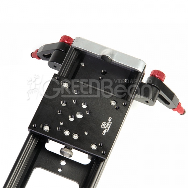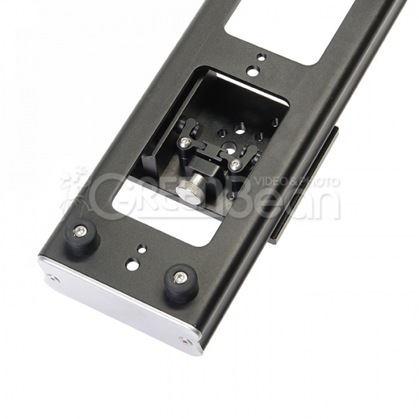 Слайдер GreenBean Glide Track 100 Production GreenBean Glide Track 100 Production - слайдер для тяжелых условий эксплуатации и профессионального использования в кинопроизводстве, предназначен для точного, плавного, бесшумного перемещения камеры весом до 20 кг, длина направляющей 98,5 см. Направляющая из цельного алюминиевого профиля Направляющий рельс слайдера изготовлен из цельной алюминиевой заготовки методом экструзии (продавливание расплава алюминия через формообразующий экструдер), что обеспечивает профилю высокие характеристики прочности и жесткости. Безлюфтовая каретка Ролики на стальных подшипниках расположены под разными углами (по 4 на каждой стороне) и двигаются по внутренней стороне направляющей, что гарантирует продолжительное использование и стабильный безлюфтовый ход. На каретке находятся 11 монтажных резьбовых отверстий 1/4" и 3 резьбовых отверстия диаметром 3/8", которые позволяют размещать на каретке аксессуары и вспомогательное оборудование. Центральное отверстие 3/8" без резьбы предусмотрено для крепления штативной головы (винт в комплекте). Большое количество монтажных отверстий обеспечивает универсальность установки и использования слайдера. Дополнительно можно приобрести базу с чашей GreenBean Video Base 100/75 для установки штативных голов с шаровым основанием. Двусторонний стояночный тормоз Каретка оборудована стопорным винтом с двусторонним стояночным тормозом, при завинчивании рукоятки происходит одновременный выпуск двух тормозных колодок, которые надежно фиксируют каретку, благодаря этому слайдер можно использовать даже с тяжелыми профессиональными камерами. Готов к установке на любые поверхности Слайдер GreenBean Glide Track Production можно использовать на любых поверхностях и в любых условиях. Возможна установка на штативы или на съемные опоры двух видов из комплекта поставки – короткие резиновые ножки и кронштейны с вывинчивающимися поворотными ножками. На направляющей рельсе предусмотрены спаренные резьбовые отверстия диаметром 1/4" и 3/8", отверстия расположены в 5 точках для установки слайдера под разными углами наклона на штативы. Короткие резиновые опоры можно использовать на ровных поверхностях, где не требуется выравнивание слайдера по уровню горизонта. Кронштейн с ножками позволит установить слайдер на более сложных поверхностях, где требуется тонкая настройка уровня. Ножки на кронштейне наклоняются, регулируются по высоте на 15 мм и поворачиваются на 360˚ вокруг оси крепления. Ножки соединяются с кронштейном с помощью зубчатой муфты, препятствующей проскальзыванию. В узле крепления ножки находится прижимная пружина, если ослабить зажим, то ножка не потеряет своего положения, но позволит отклонить ее ступенчато через зубчатый механизм. На концах ножек расположены наконечники с резиновой опорой