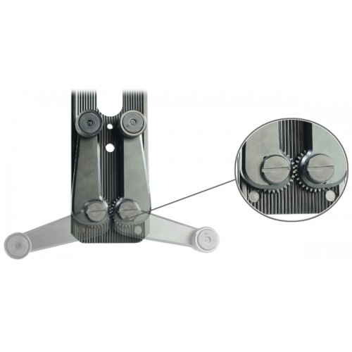 Площадка прочно фиксируется к рельсам при помощи колес с подшипниками, что позволяет даже перевернуть устройство, при этом, абсолютно не опасаясь за то, что камера может упасть. Система оснащена боковым тормозом, который позволяет зафиксировать слайдер в определенном положении.