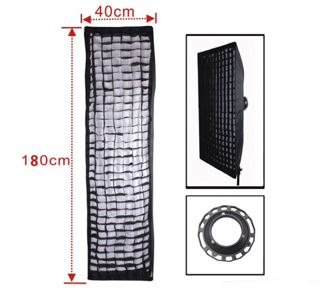 Софтбокс с тканевой решеткой размер 40x180 см. Байонет Bowens. |