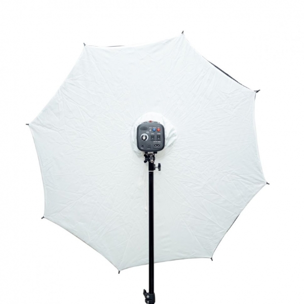 Софтбокс-зонт белый на отражение FUJIMI FJSU-R40. Софтбокс-зонт позволяют получать больший контроль за нежелательными рефлексами от переотражений и более равномерный свет из-за применяемых диффузоров. В сложенном состоянии Софтбокс-зонт довольно компактный, не на много шире обычных зонтов, что удобно при переноске и хранении. За счет направленности в одну сторону, зонты-софтбоксы очень полезны при съемках в помещениях, где возможны неконтролируемые рефлексы света при использовании стандартных незакрытых зонтов Комплектуется чехлом для переноски