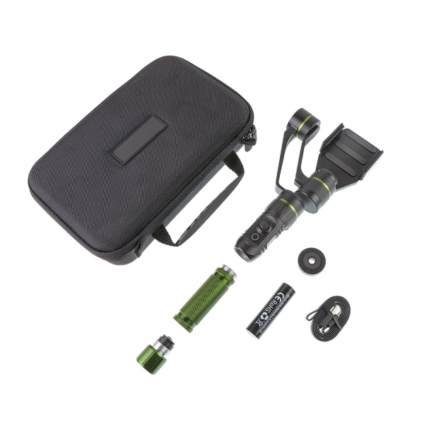 Стедикам электронный GreenBean iStab Smart трёхосевой Любой мобильный телефон станет профессиональной камерой, если использовать стабилизатор GreenBean iStab Smart. С его помощью даже обычный телефон сможет создавать плавные видеозаписи высокого качества. Дизайн интегрированной панели управления разработан таким образом, что позволяет управлять стабилизатором и мобильной камерой при помощи кнопок, практически не используя сенсорный экран. Благодаря продвинутому программному обеспечению, он корректно обрабатывает такие «сложные» положения для электронных стедикамов, как наклон ручки на 45 градусов, или близкое к соосности расположение двух моторов. А за счёт применения высококачественных и точно изготовленных подшипников вы будете избавлены от проблем с вибрациями, гудением, различными шумами и прочими дефектами, свойственными многим более простым моделям. Корпус стабилизатора изготовлен из алюминиевого сплава, на рукоятку присутствует насечка для лучшего удержания. Питание прибора происходит от одного аккумулятора типа 18650 Зарядка аккумулятора осуществляется через микро-USB порт на корпусе прибора. Время непрерывной работы — 5 часов (с аккумулятором ёмкостью 2600 мАч). Стабилизатор подключается к смартфону по Bluetooth. Управление камерой смартфона осуществляется одной кнопкой и пятипозиционным джойстиком.