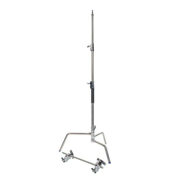 - Телескопическая колонна из 3 секций диаметром 35, 30 и 25 мм надежно соединяются между собой металлическими винтовыми зажимами. Между секциями предусмотрены амортизирующие резиновые кольца. Стационарный стальной шпигот 5/8” позволяет установить на него или на закрепленную на нем поворотную муфту с перекладиной оборудование массой до 20 кг.